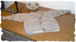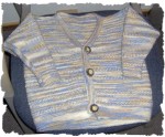 Some of the other things that she learned are: two kinds of seaming, picking up stitches, the one-row buttonhole, and the P2tog bind off. The pattern is such a compliment to the yarn. I think I want to make an adult size…because one knows I can have never have enough knit items!