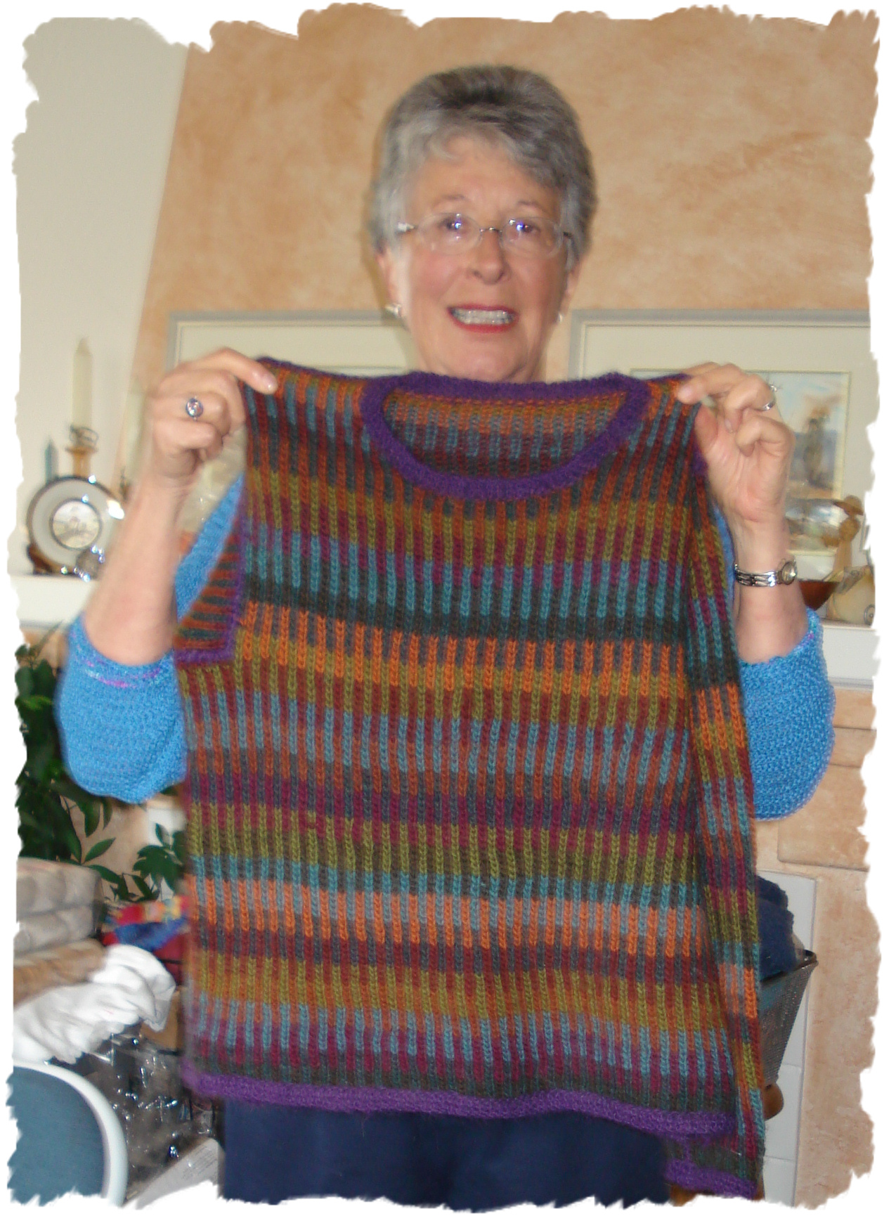For this sweater from Knit One Below Jean used the recommended yarn, Nashua Handknits Creative Focus Worsted. It was a fun project….I think she started this project right after Stitches West 2009. I know she enjoyed knitting it!