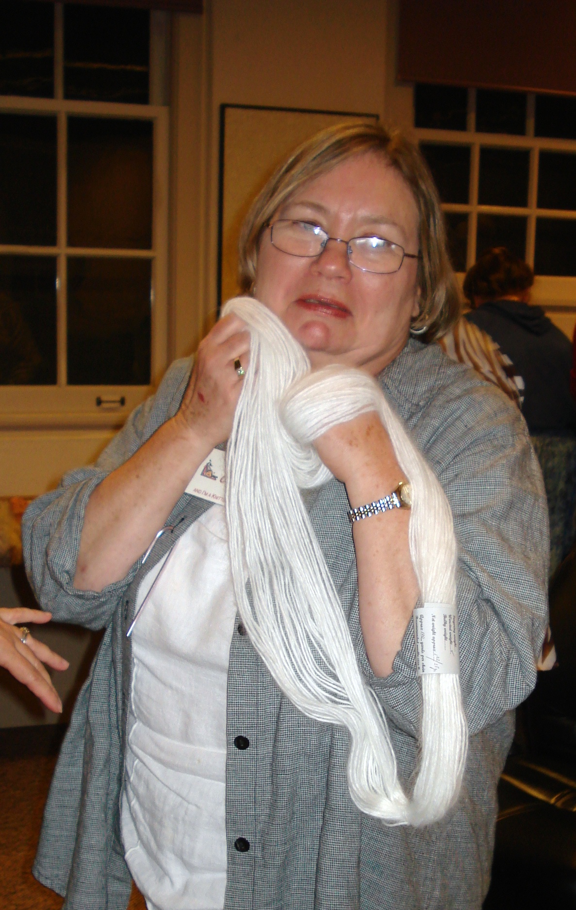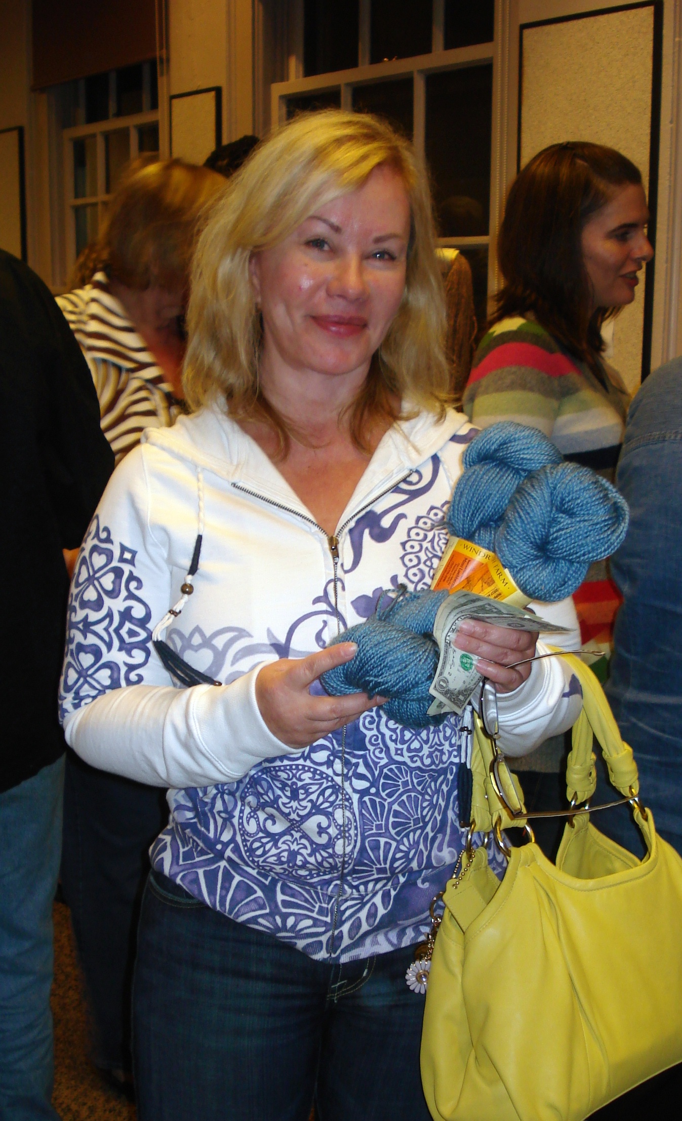Marlee and Mimi have such wonderful yarns to offer. And most of us walk with a yarn or more purchased. Jan had an immediate love affair. And seeing Jan, don’t you just want to jump into this photo with her.