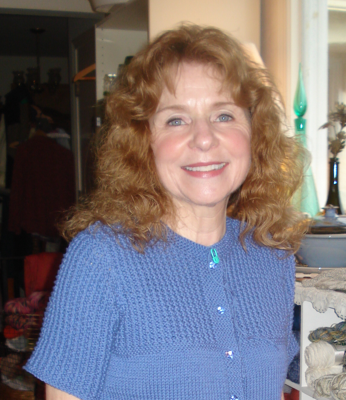 Janie joined one of our knitting workshops a couple of months ago. She not only embarked on a sweater but it was her first…..and it’s done. Her inspiration for her garment came from Creative Knitting Magazine, Sept. 2009. It’s called Short-Sleeved Cardigan and the skill level is just a bit harder than “Easy”. Janie is not sure that she agrees with that description.