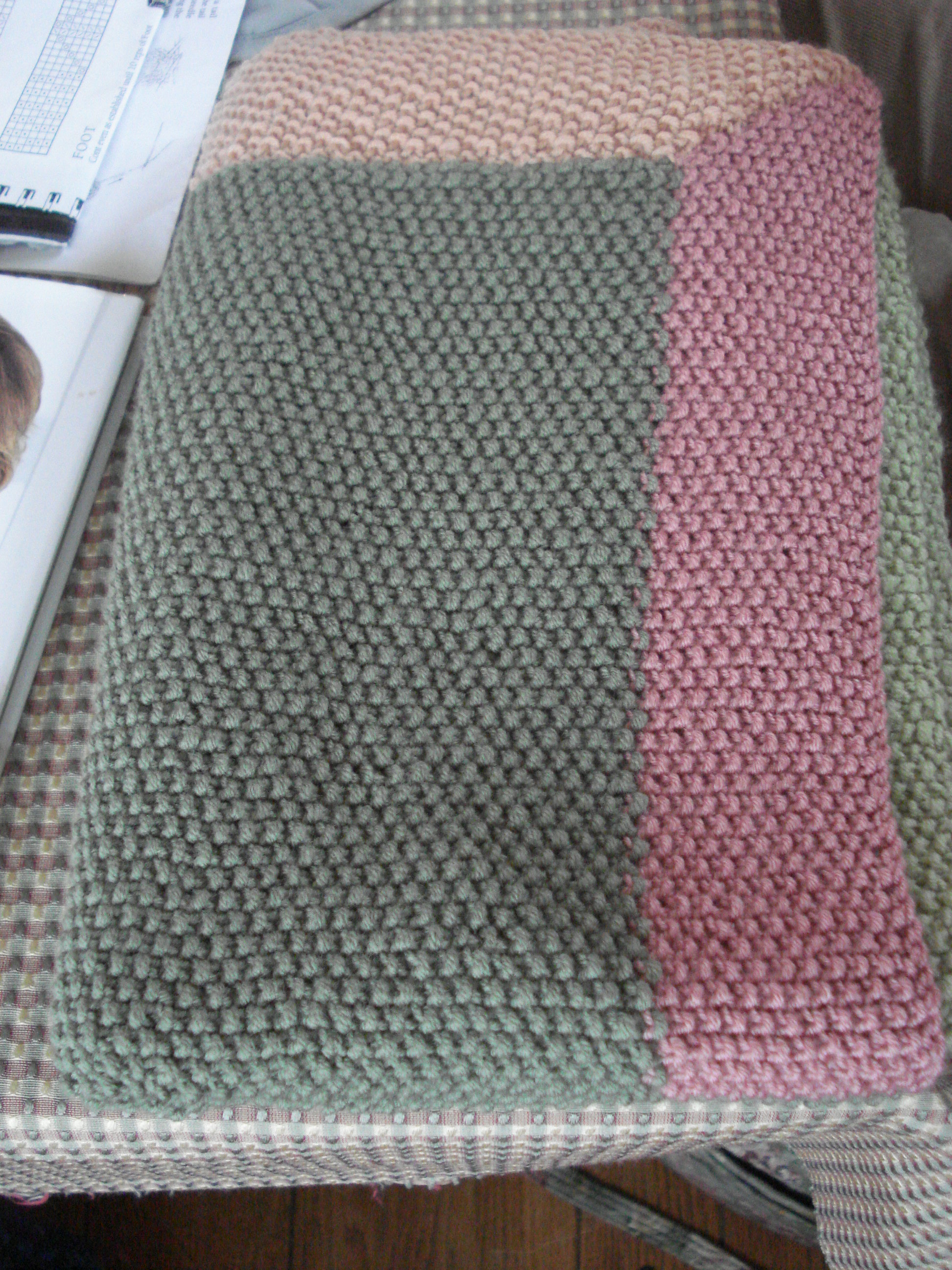 It wasn’t that long ago that Shari was working her way through what seemed to be the never-ending seed stitch (also often referred to as Moss Stitch) baby blanket. Would it ever be done?!