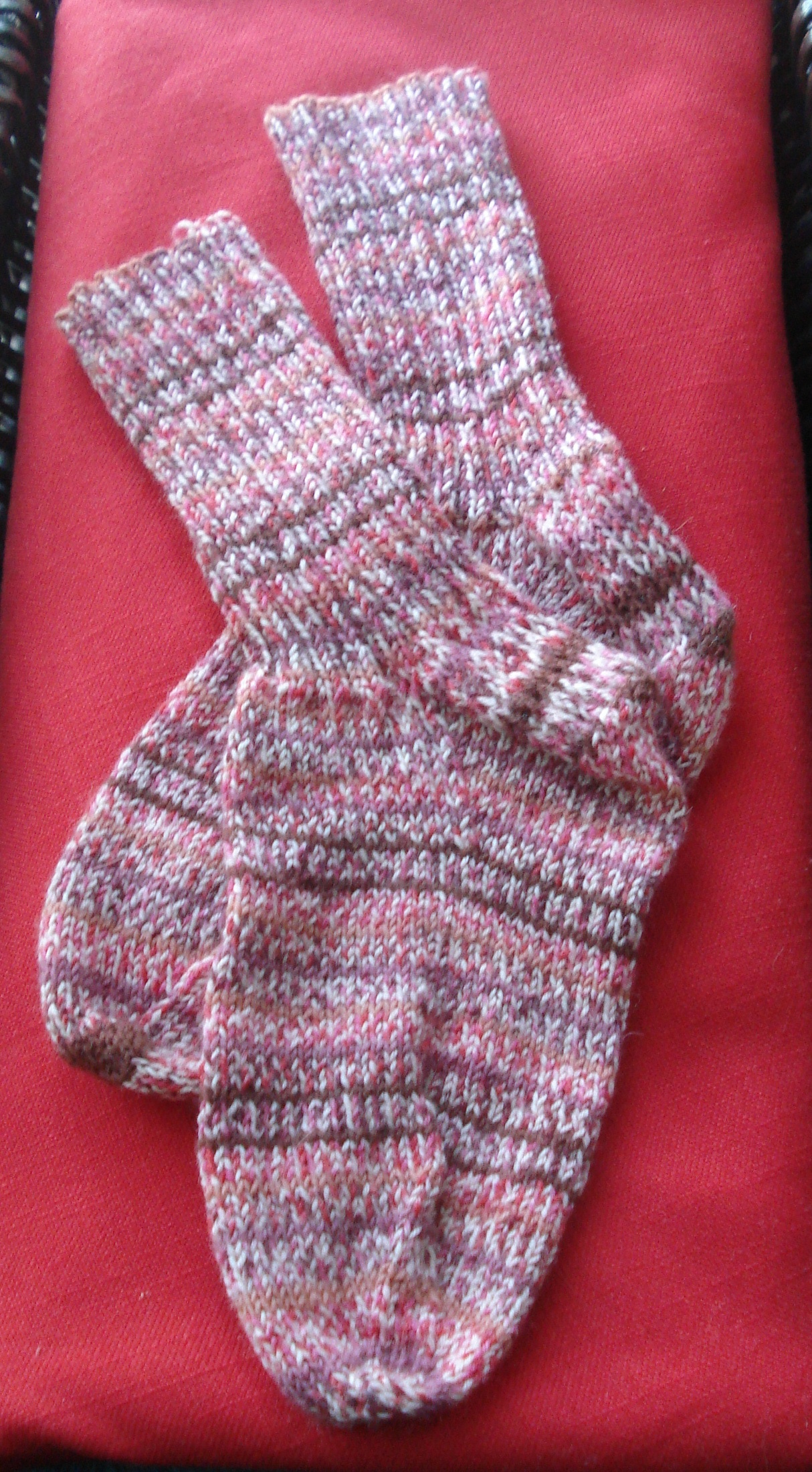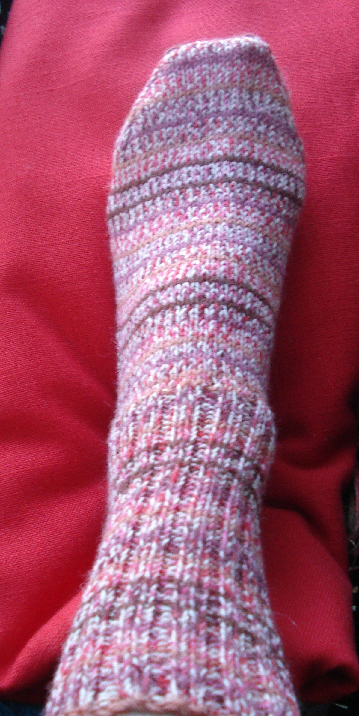 On Sunday my knitting (completed) wardrobe grew to include a pair of self-striping socks and a stole knit with MaggiKnits Linen…the pattern was inspired by Fiber Trends Bathing Beauties designed by Evelyn Clark. A while back I was inspired by this pattern as Kimberly was knitting one of the face clothes…..and I thought that pattern would be lovely in a stole. And it is! I remember having the wild idea that it would be fun to show Maggi Knits Linen in a different pattern at Stitches West last year…like Maggi really needs help! But the goal was to show a more conservative style for her yarn. I can hardly wait to see what this stole feels like after it is washed.