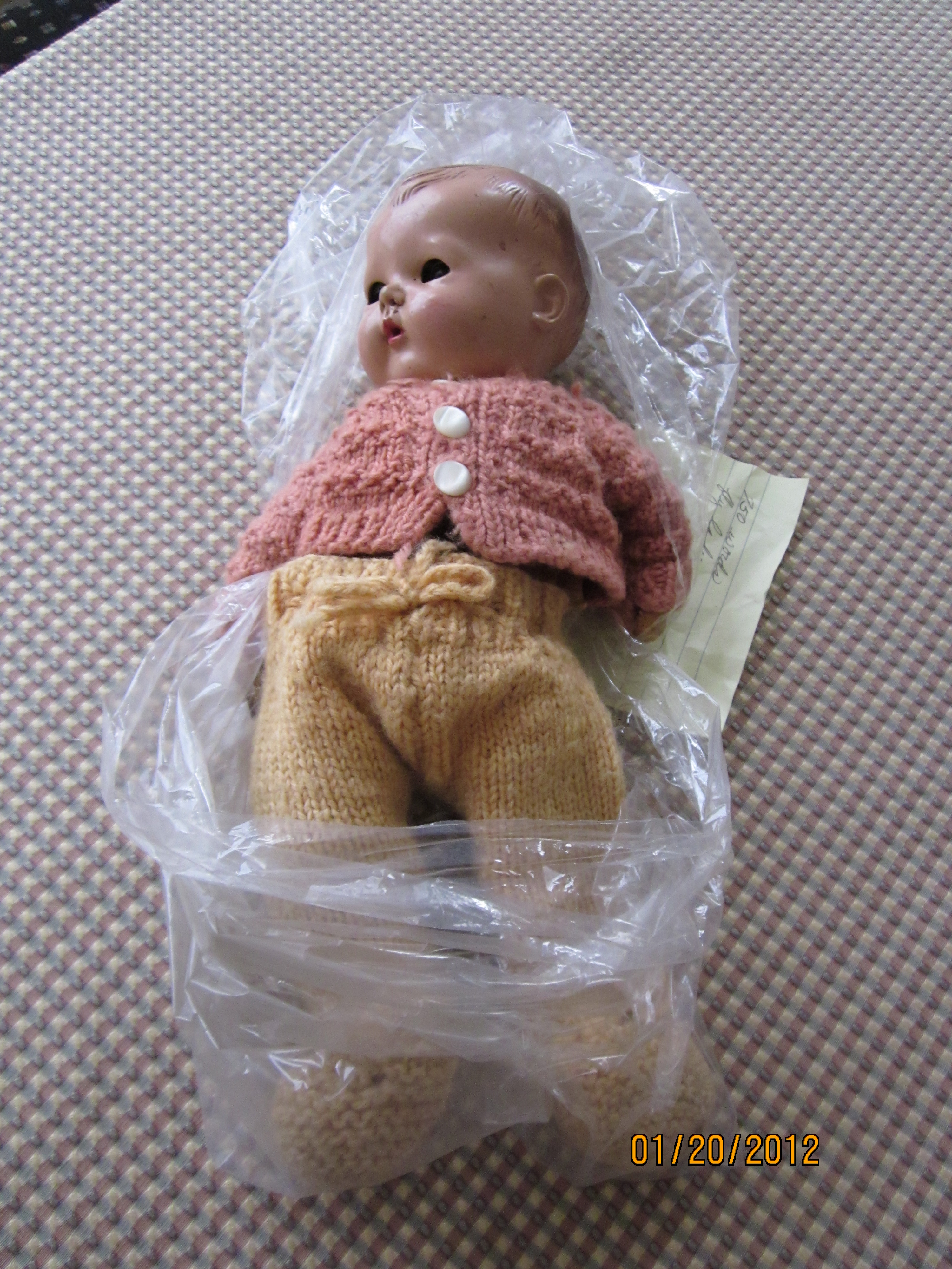 I was looking in my archives the other day and two items from my childhood surfaced….my baby doll dressed in the first baby outfit I knit when I was about 9 years old (I learned to knit when I was 8)….and my first knitting bag. Of course, each artifact has its own story.