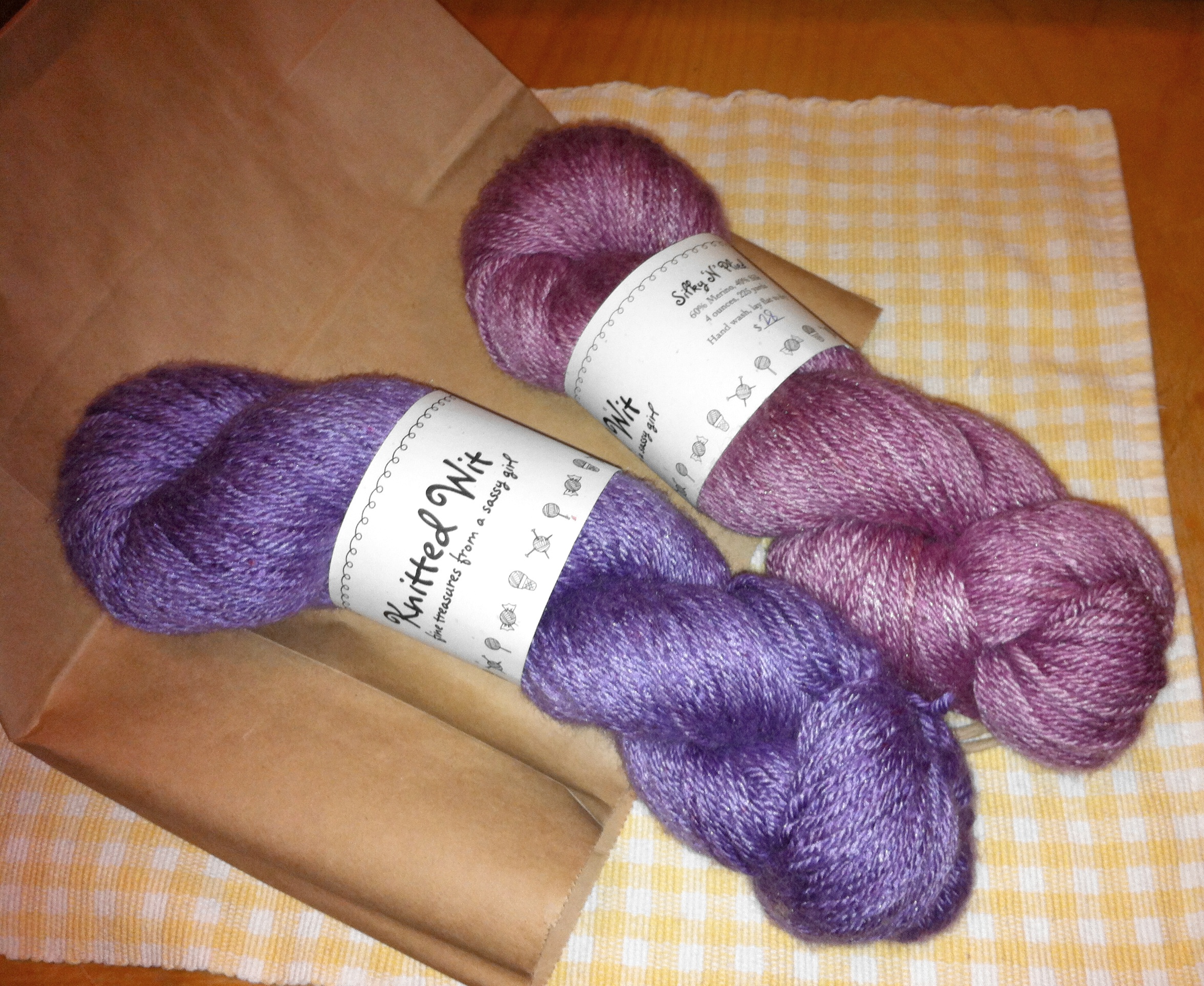 Lorajean is passionate about her all consuming work…the yarn that she dyes and makes available for us…the knitter. Here is what she does with yarn…..spin, wind, dye, rewind, label…take to market! I wasn’t in the market to buy…..we all know how much I have in my stash as well as projects in queue to finish….nevertheless, I became possessed and bought some of her yarn…..2 skeins of Silky ‘N” Plied (60% Merino, 40% Silk) @ 225 yards…1 colorway Beaujolais and the 2nd colorway Orchid. Not quite sure of my vision for this yarn yet…but with 450 yards I have many options. I love wool and silk blends!