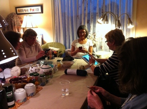 When Carol asked us to help her find out the details of a dog show in Vallejo tomorrow (which is now today), we were all over it. We dropped our knitting needles and pulled out our technology! Don’t let Debbie fool you…the one with knitting needles in her hands. When she saw me pull out my iPhone camera…she grabbed her needles. Love you Debbie!