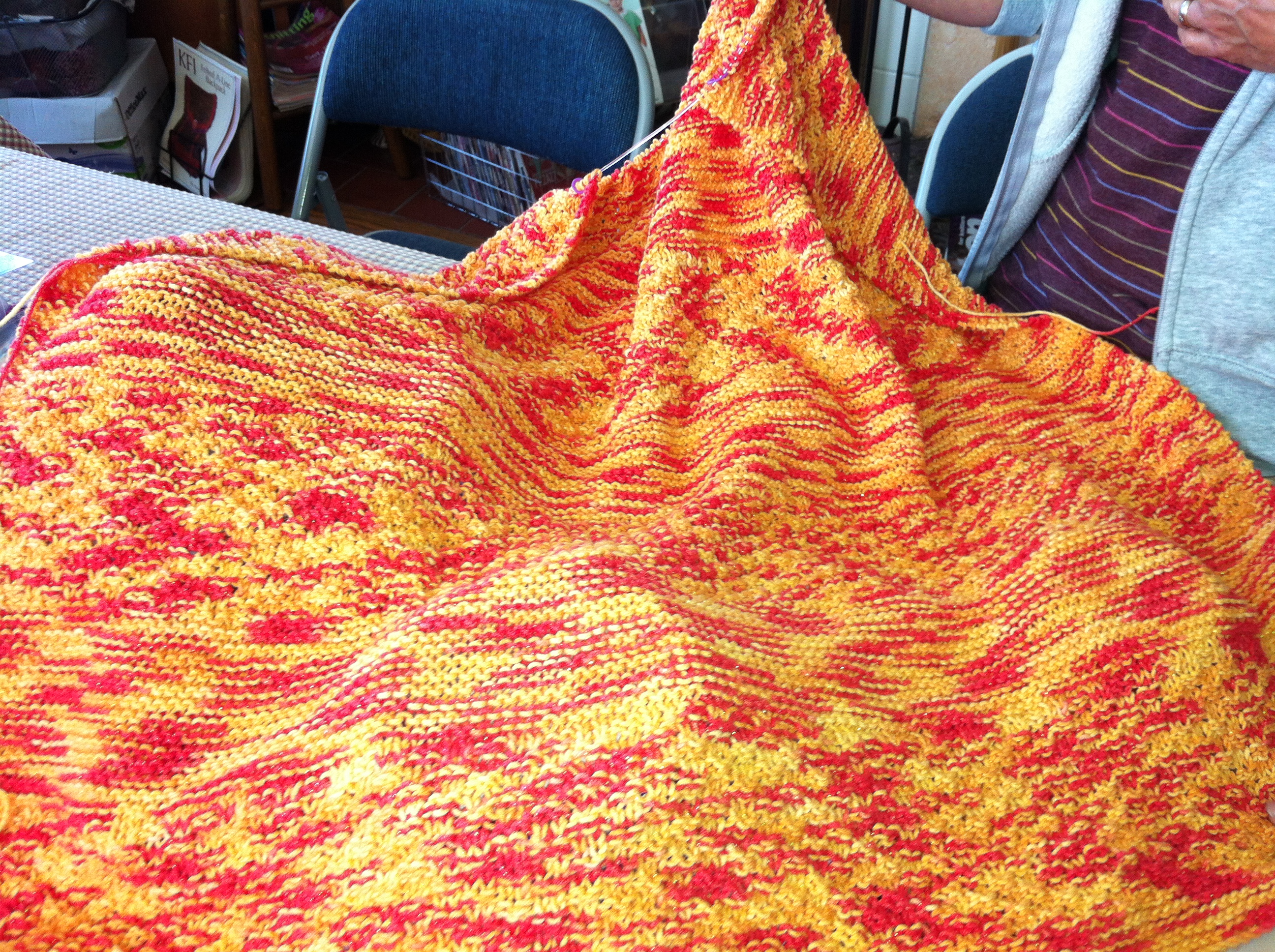 There are several afghans/blanket in the making in the Skein Lane knitting circles. Here is a sampling.