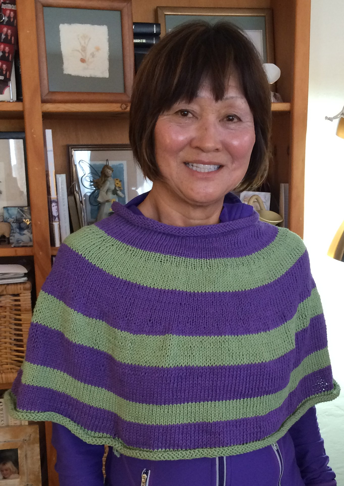 The Round Shawl from Sally Melville’s “The Knit Stitch”. Reiko created the color choices.