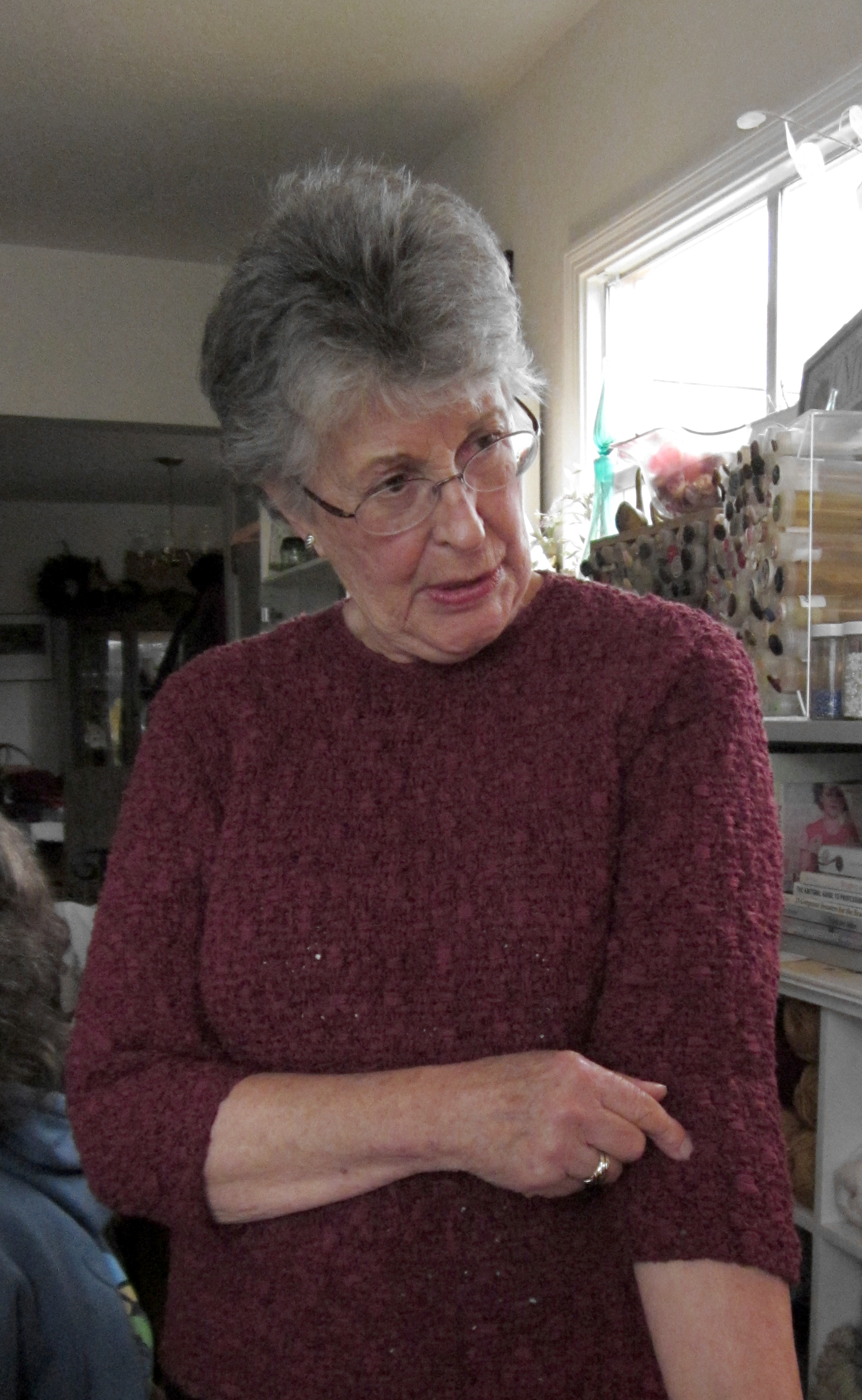 We then went back to the house and were able to visit with the family and old friends. I’ve saved the program to give to you on Friday. I keep thinking back to Saturday. It really was a touching tribute to her active life. Besides knitting, she was very active in her church, in water exercise programs, PEO, a prayer group, was class secretary for the class of 1958 at Cal, etc. etc. The last musical selection played at her service was “Hail to California” and those of us who knew the words were able to sing!”