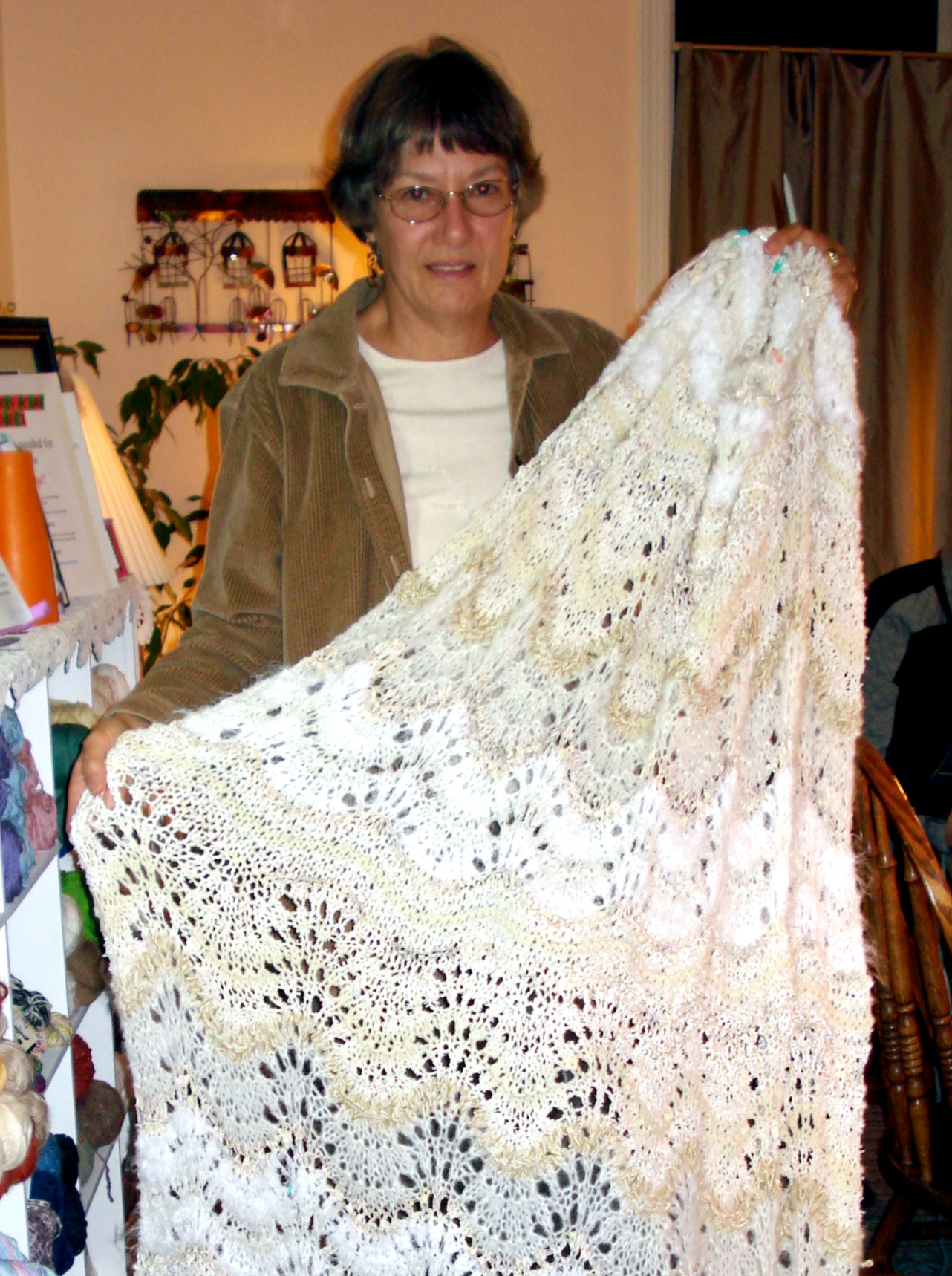 More about Debbie….she is an avid crafter. She knits, beads, spins, dyes…that is just a bit that I know. Her excitement about fiber arts is so inspiring….I still am enjoying her glee when she was sharing her fiber arts experiences at our recent retreat. I am in awe of how much Debbie accomplishes…not only does she craft at the handcraft (not homemade) level, she “runs” a school and finds time to spend with her husband.
